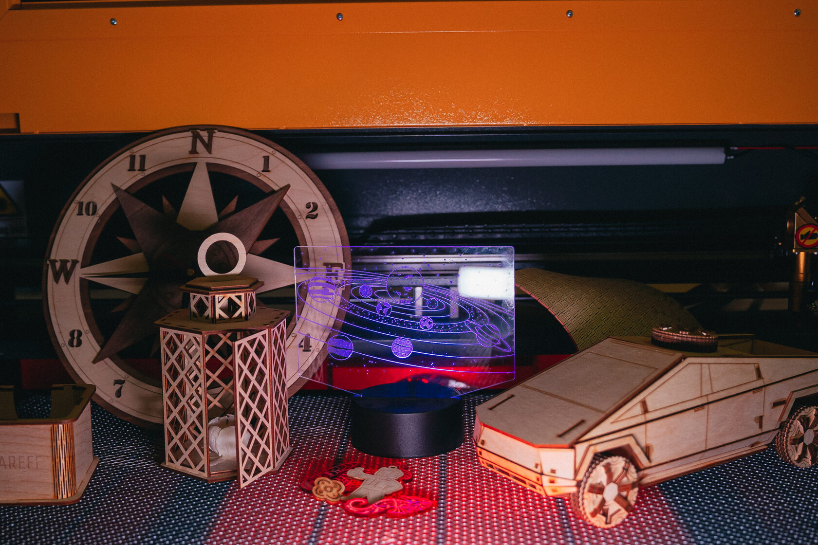 Лазерный станок открывает массу возможностей для бизнеса — от сувениров до мебели.