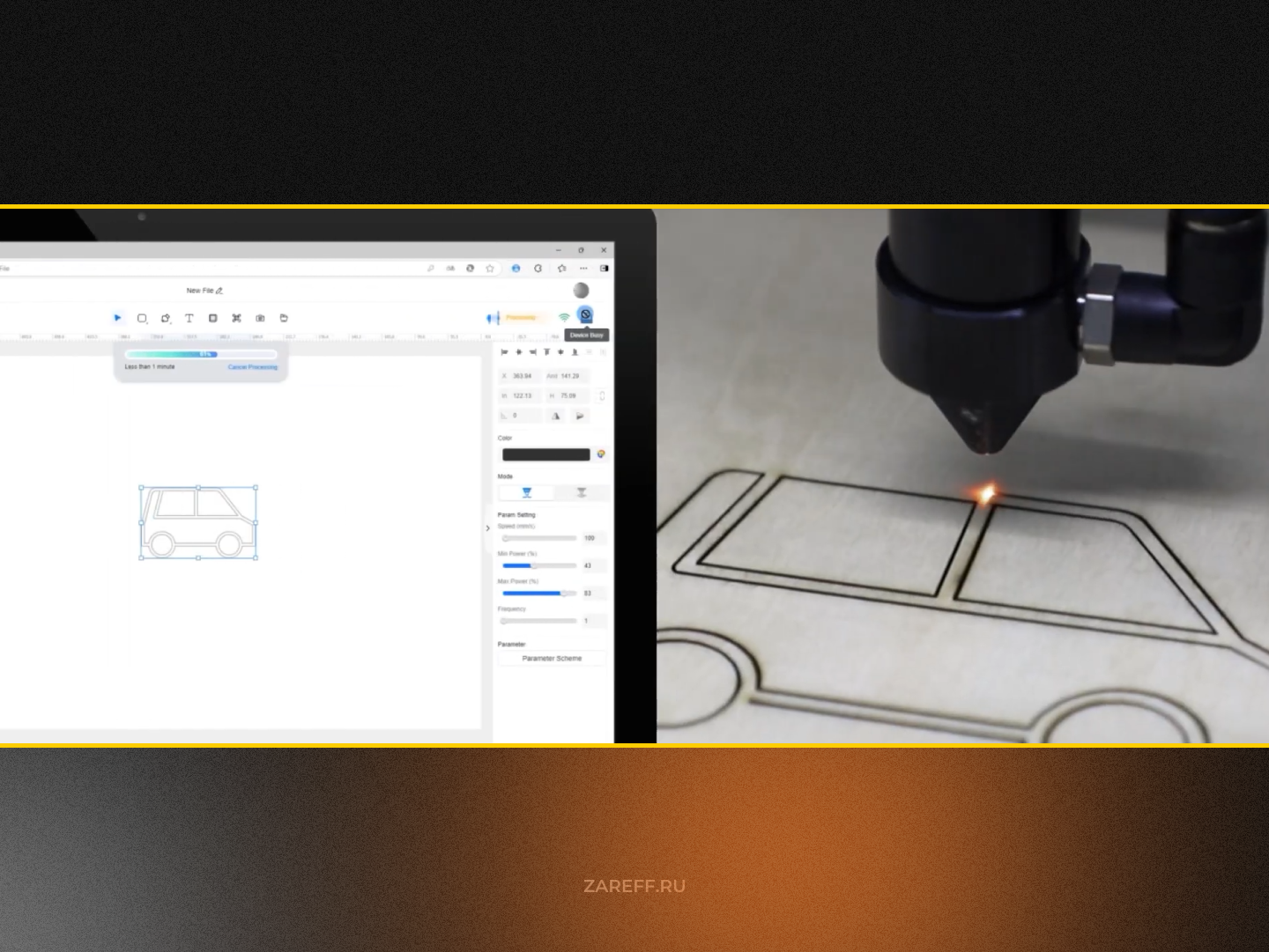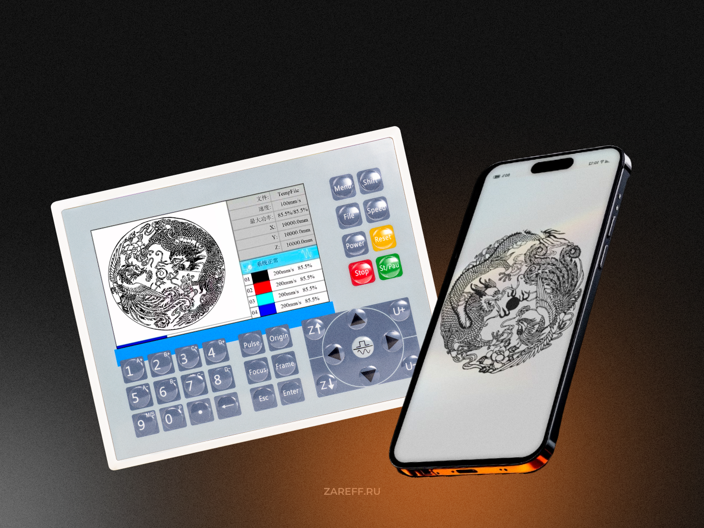 Через фирменное приложение стало возможно прямо с телефона рисовать макеты, загружать изображения, подгонять их под нужный формат и отправлять на станок.